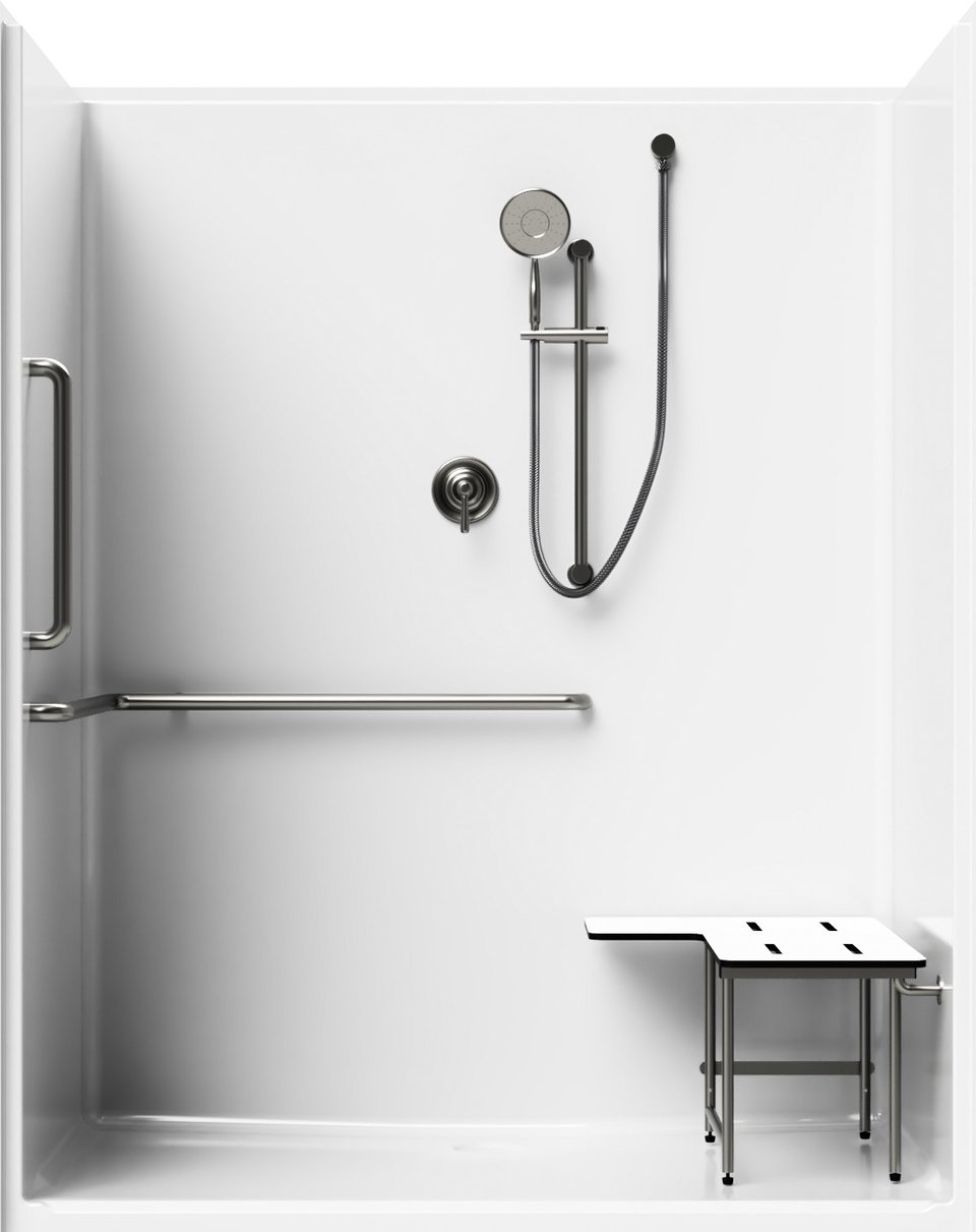 FHA standards dictate that showers must be reinforced with the strength to support the later installation of these accessories, but they’re not mandated additions. If you’re unsure which standard you need to follow, or want to make sure your bathroom architecture plan covers all the bases, an ADA shower stall is your best bet.